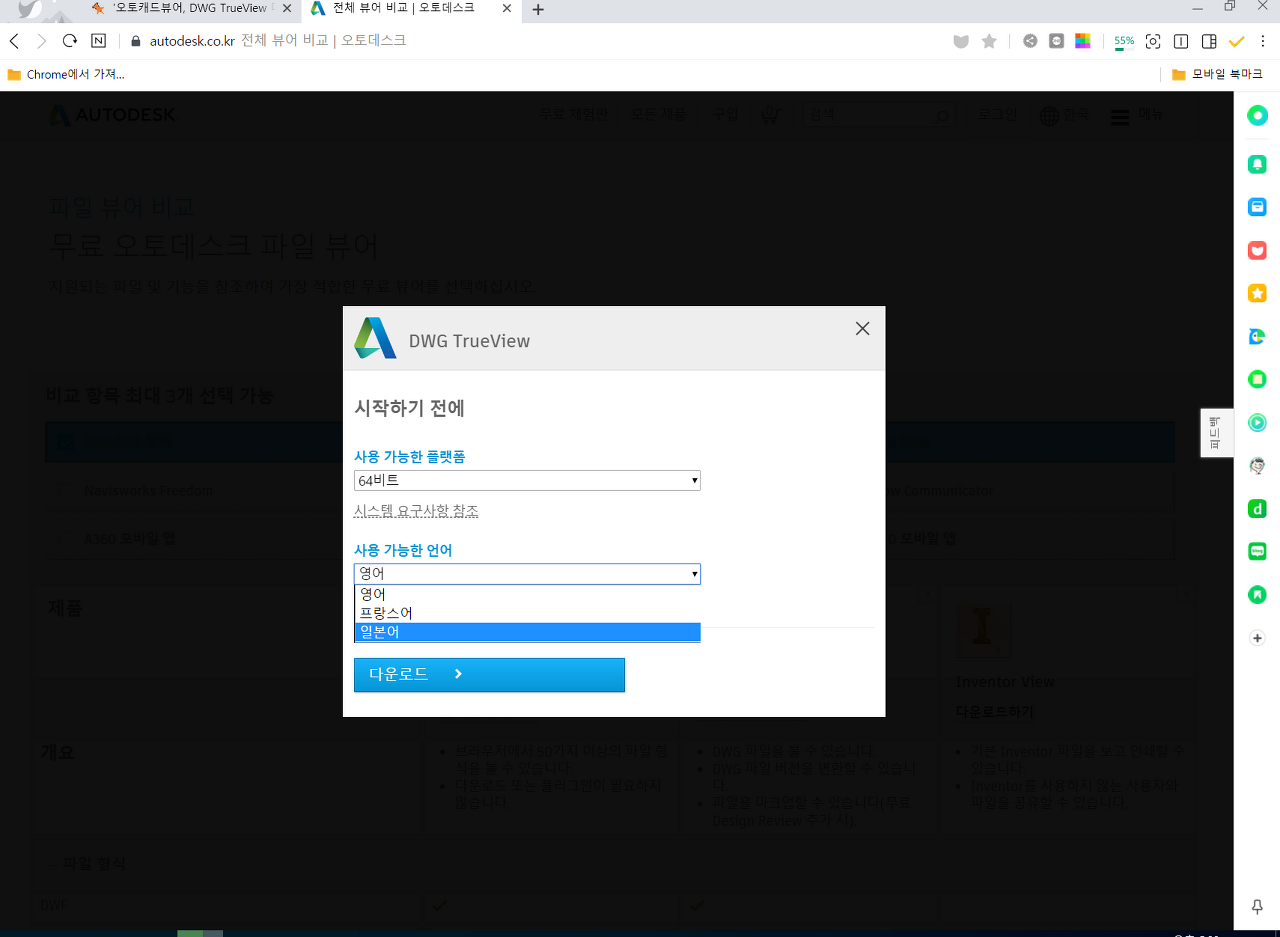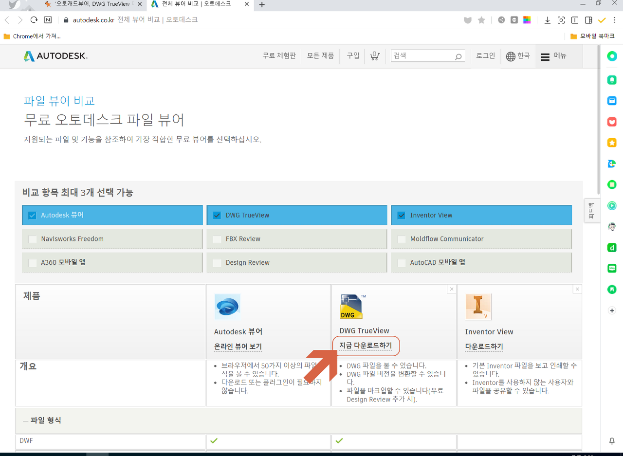 오토캐드 뷰어를 설치하기 위해 DWG TrueView 다운로드 사이트로 이동합니다.