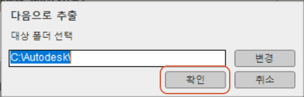 <확인>을 누릅니다. 자동으로 경로에 압축을 풀고 설치가 시작됩니다.