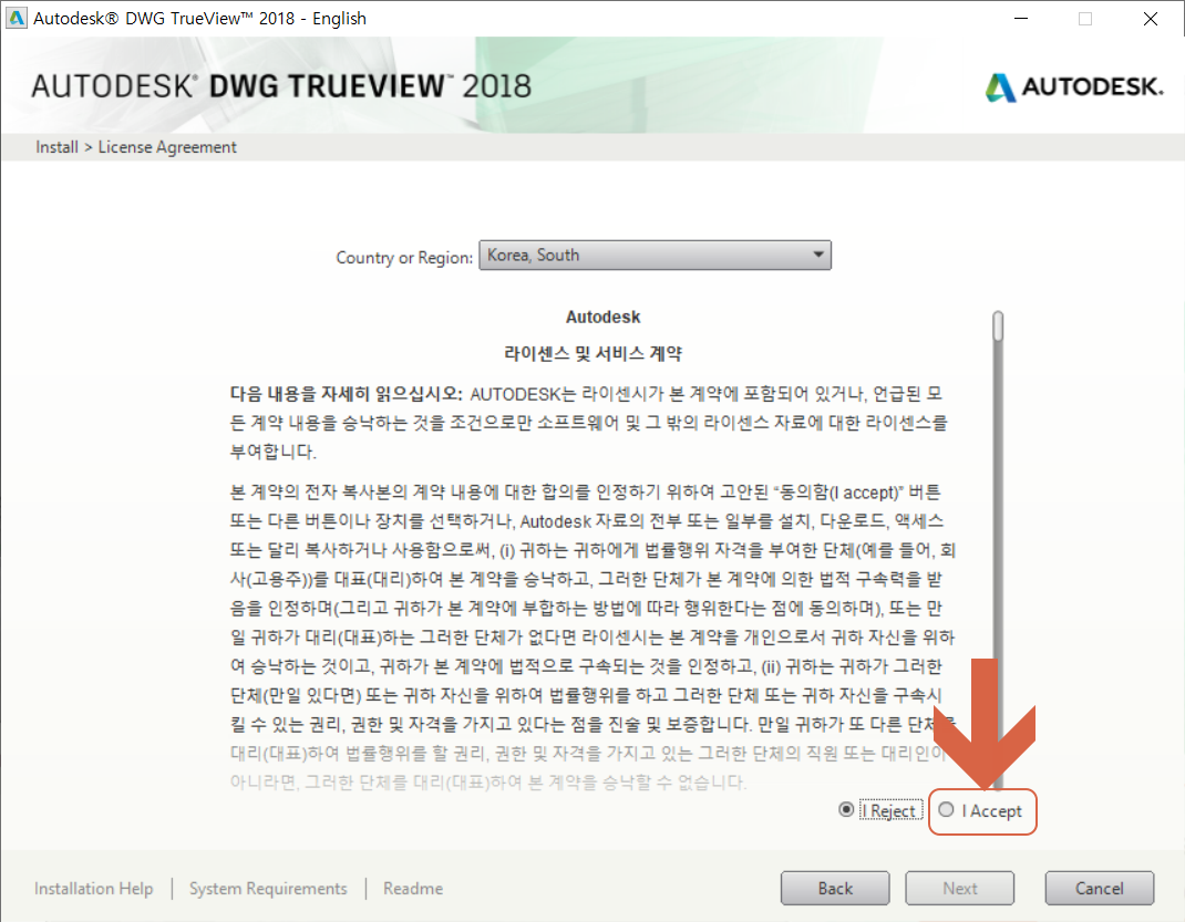 <I Accept>를 체크하여 선택합니다.