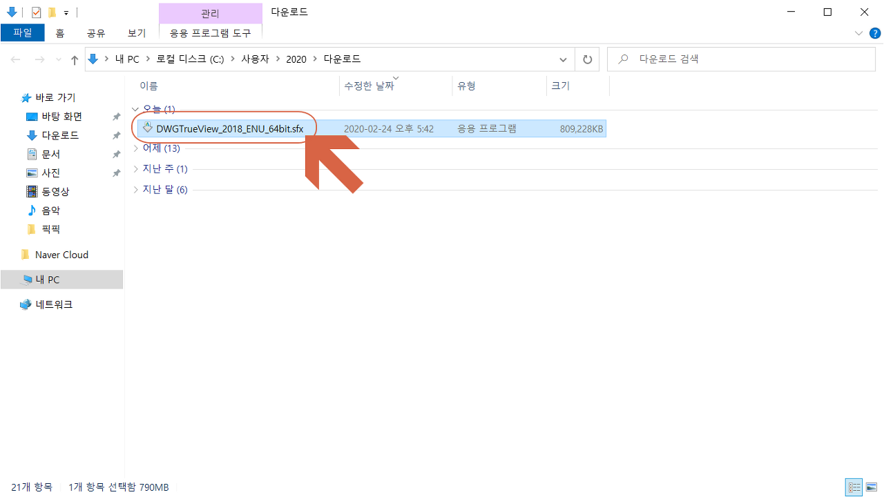 다운로드된 설치 파일을 <실행>시킵니다.