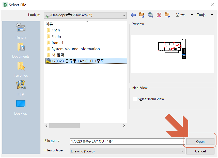 열어볼 파일을 선택 후 <Open>을 누릅니다.