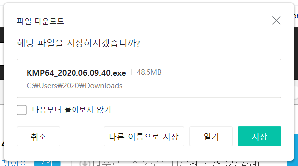 저장이 완료되면 다운로드 폴더로 이동합니다. KM플레이어 64X(KMPlayer 64X) 설치 파일이 보이네요.