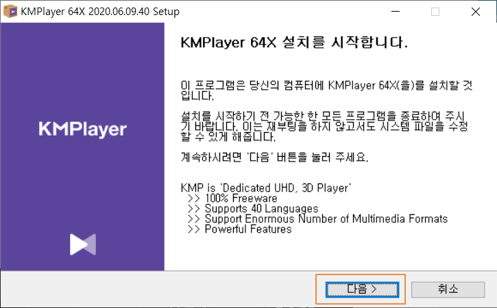 ㅁ KM플레이어 64X(KMPlayer 64X) 다운로드 및 설치하기