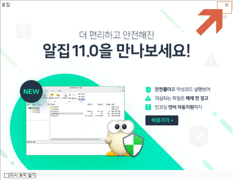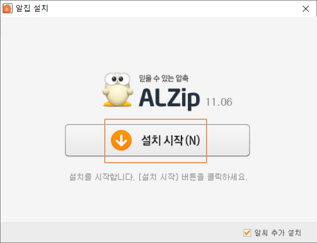 이제 설치가 완료되었습니다. 몇 군데 숨어있는 추가 프로그램 설치나 시작페이지 변경 없이 깔끔하게 알집만 설치가 완료되었습니다.