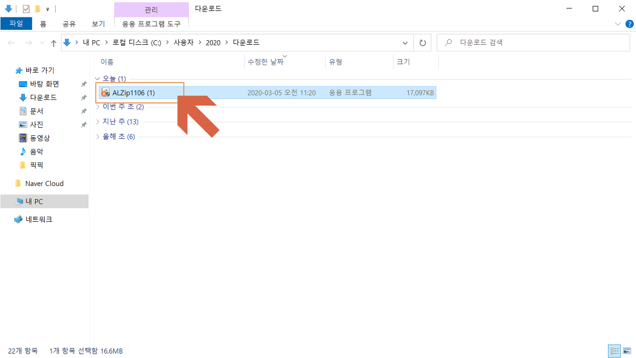 다운로드 경로에 이동하여 설치 파일을 <실행>합니다.