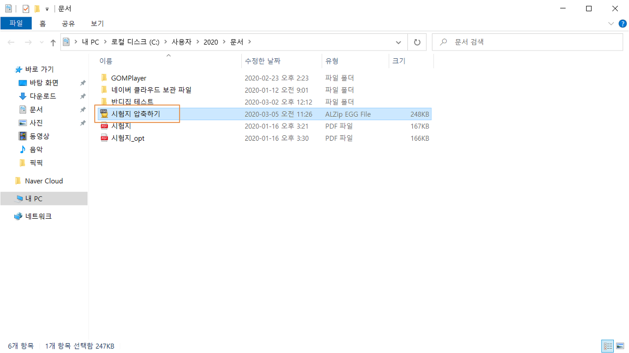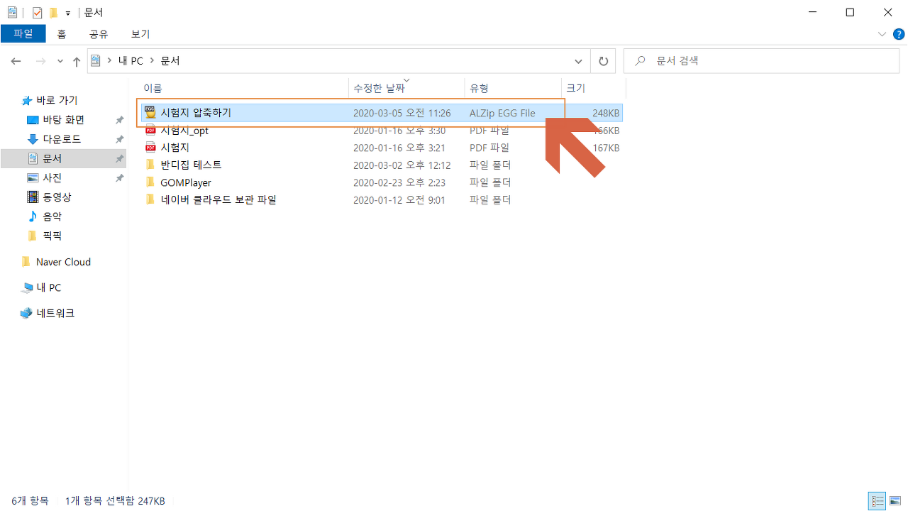 <시험지 압축하기.EGG> 파일이 생성되었습니다. 이제 압축 풀기를 진행해 보도록 하겠습니다.