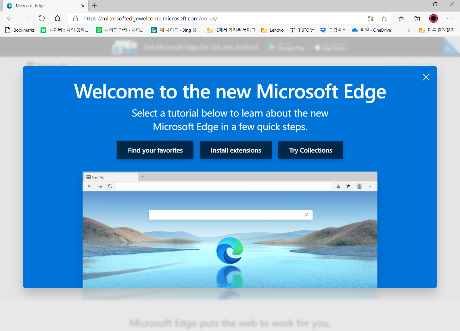 지금까지 새로운 마이크로소프트 엣지(Edge) 브라우저 다운로드 및 설치하기 그리고 마이크로소프트 계정에 로그인을 통해 기존 설정과 즐겨찾기 및 암호 등을 동기화하는 과정을 정리해 보았습니다.