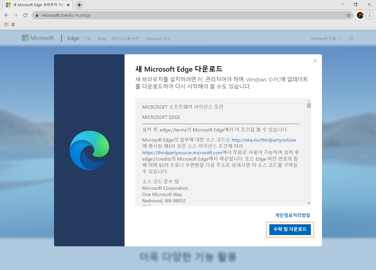 새 Microsoft Edge 브라우저 다운로드 | Microsoft