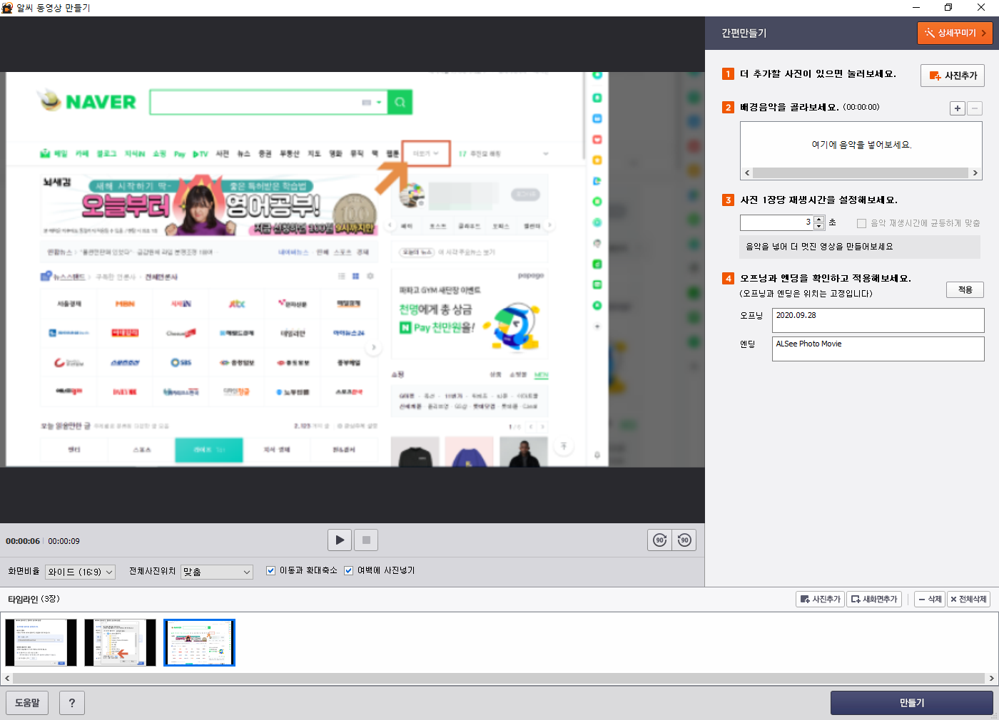 간단하고 쉽게 동영상 만들기를 할 수 있으며, 이를 통해 사진 앨범을 동영상으로 꾸며 볼 수 있습니다.