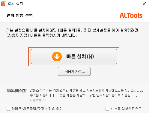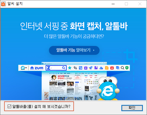 <알툴바를(를) 설치해 보시겠습니까?>에 체크 해제합니다.