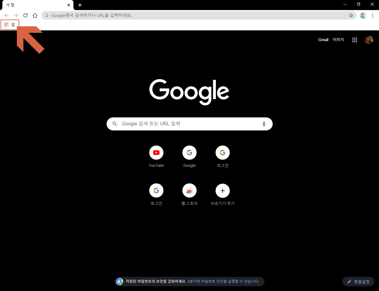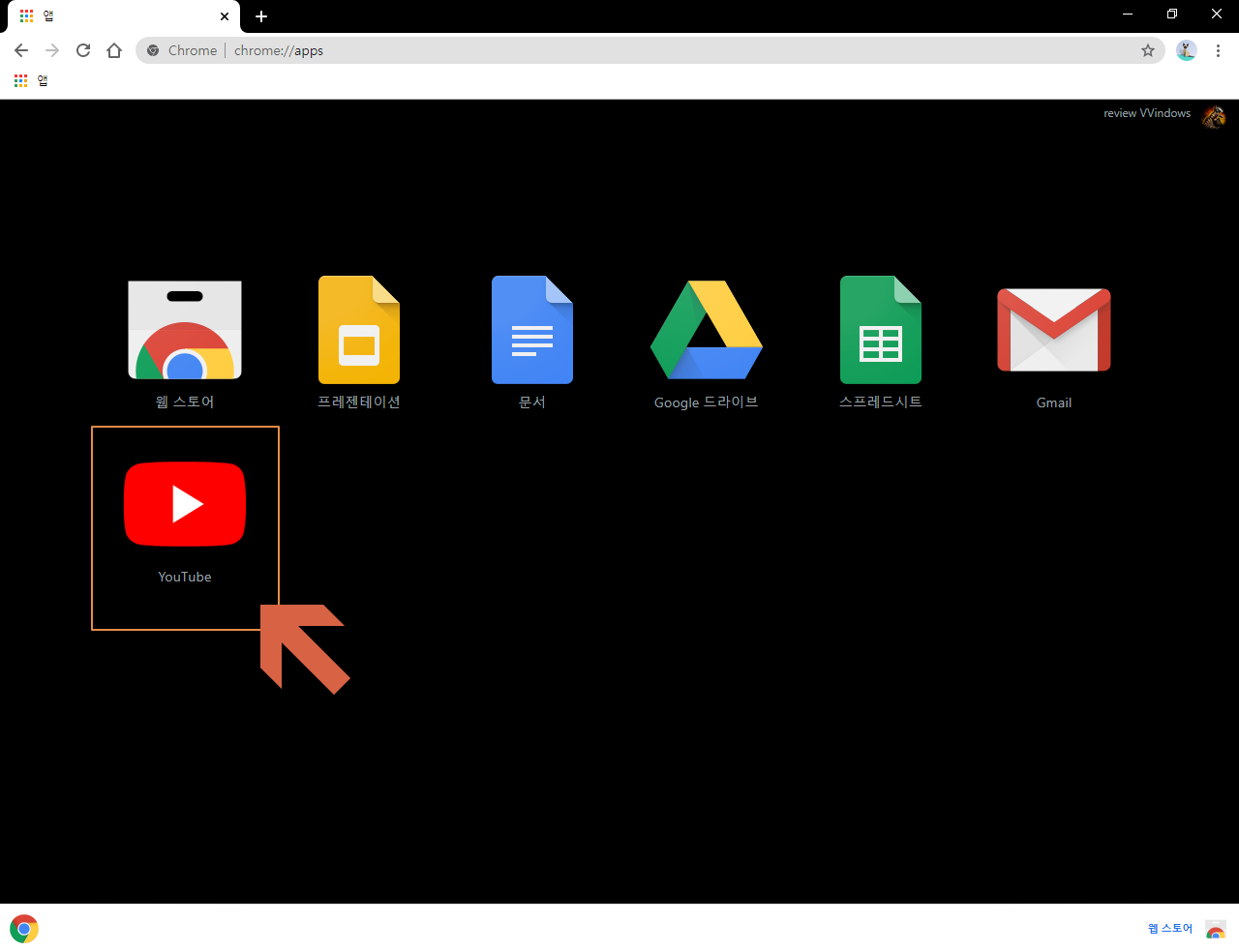 상단의 좌측에 <앱>을 누르면 크롬 앱의 리스트가 보입니다.