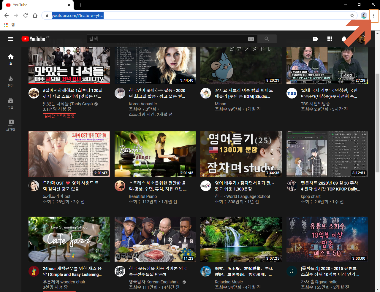 유튜브(YouTube)를 선택하면 유튜브 홈페이지로 이동합니다.
