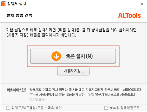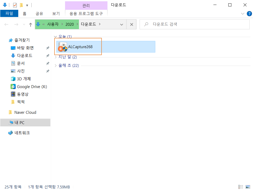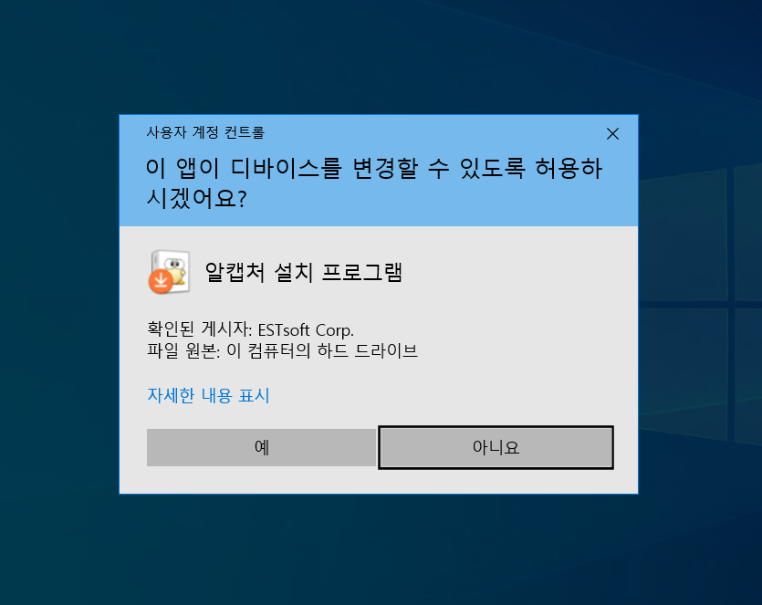다운로드 경로의 폴더로 이동하여 알캡처 설치 파일을 실행합니다.