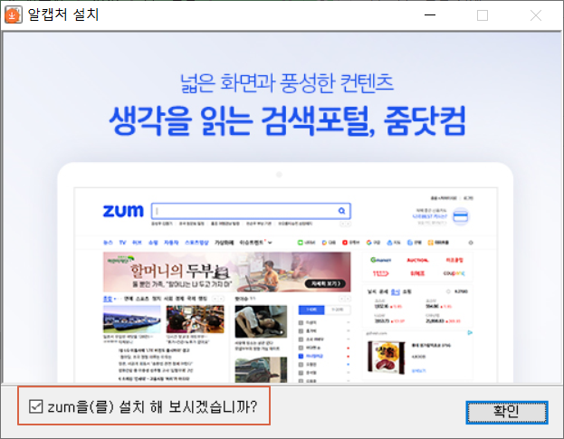 <zum을(를) 설치해 보시겠습니까?>의 체크를 해제합니다.