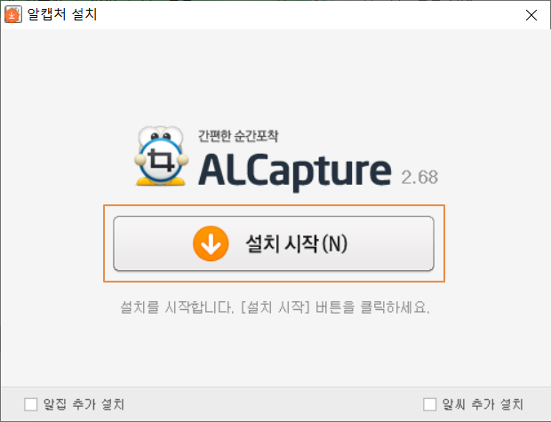 알캡쳐 홈페이지로 접속하여 <설치하기>를 클릭합니다.