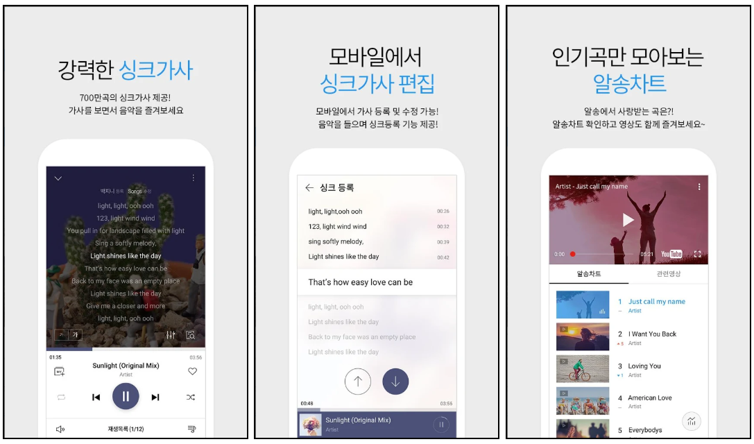 ※ 싱크가사는 현재 들리는 음악에 맞춰 가사를 표시해주는 기능입니다. (ex. 노래방)