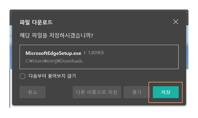 설치 파일이 다운로드됩니다. 잠시 기다려보죠.