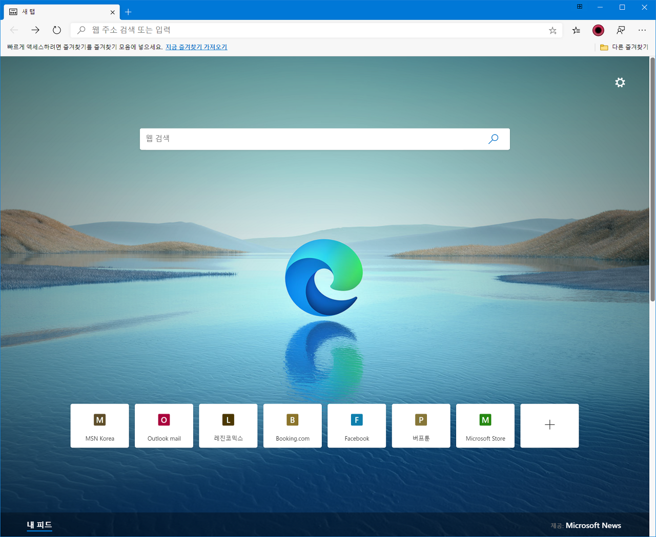 마이크로소프트社의 새로운 브라우저 엣지의 모습입니다.