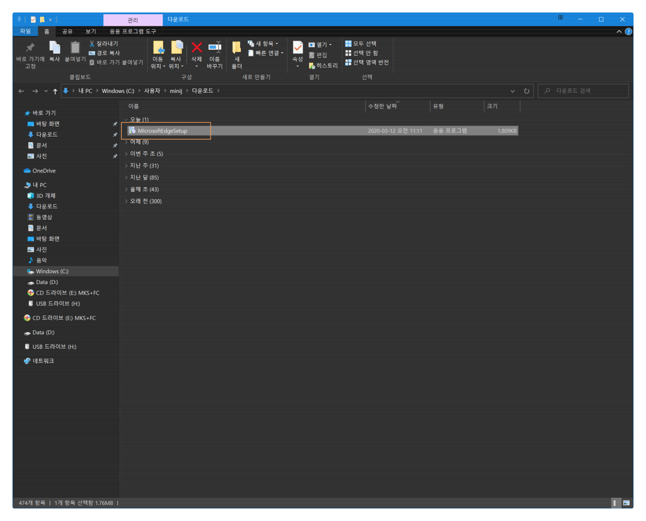 다운로드 폴더로 이동하여 설치 파일을 실행합니다.