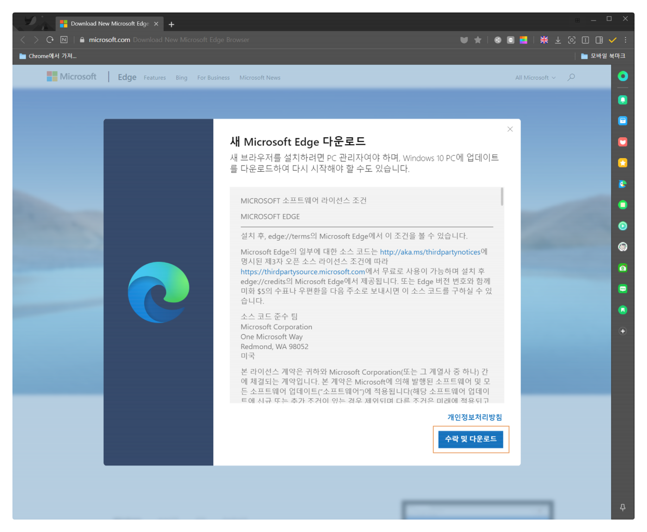 <수락 및 다운로드>를 누릅니다.