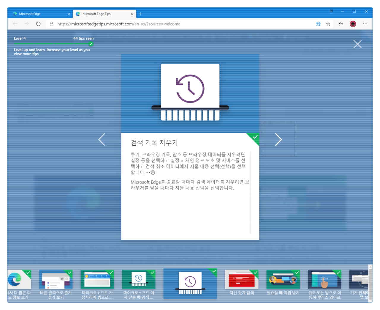 33. 마이크로소프트 엣지 닫을 때 검색 데이터 지우기