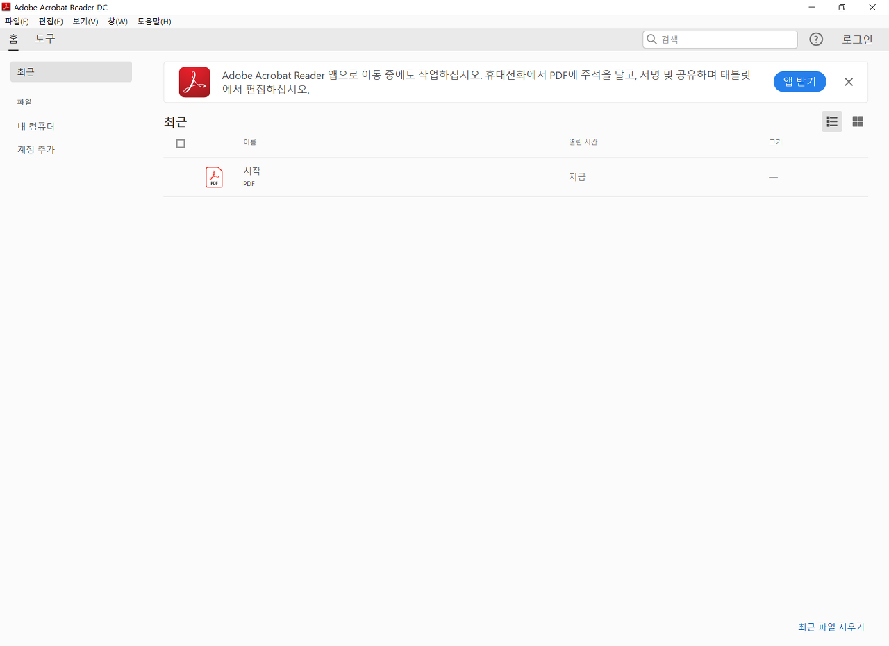 Adobe Acrobat Reader DC 프로그램이 실행되었습니다.