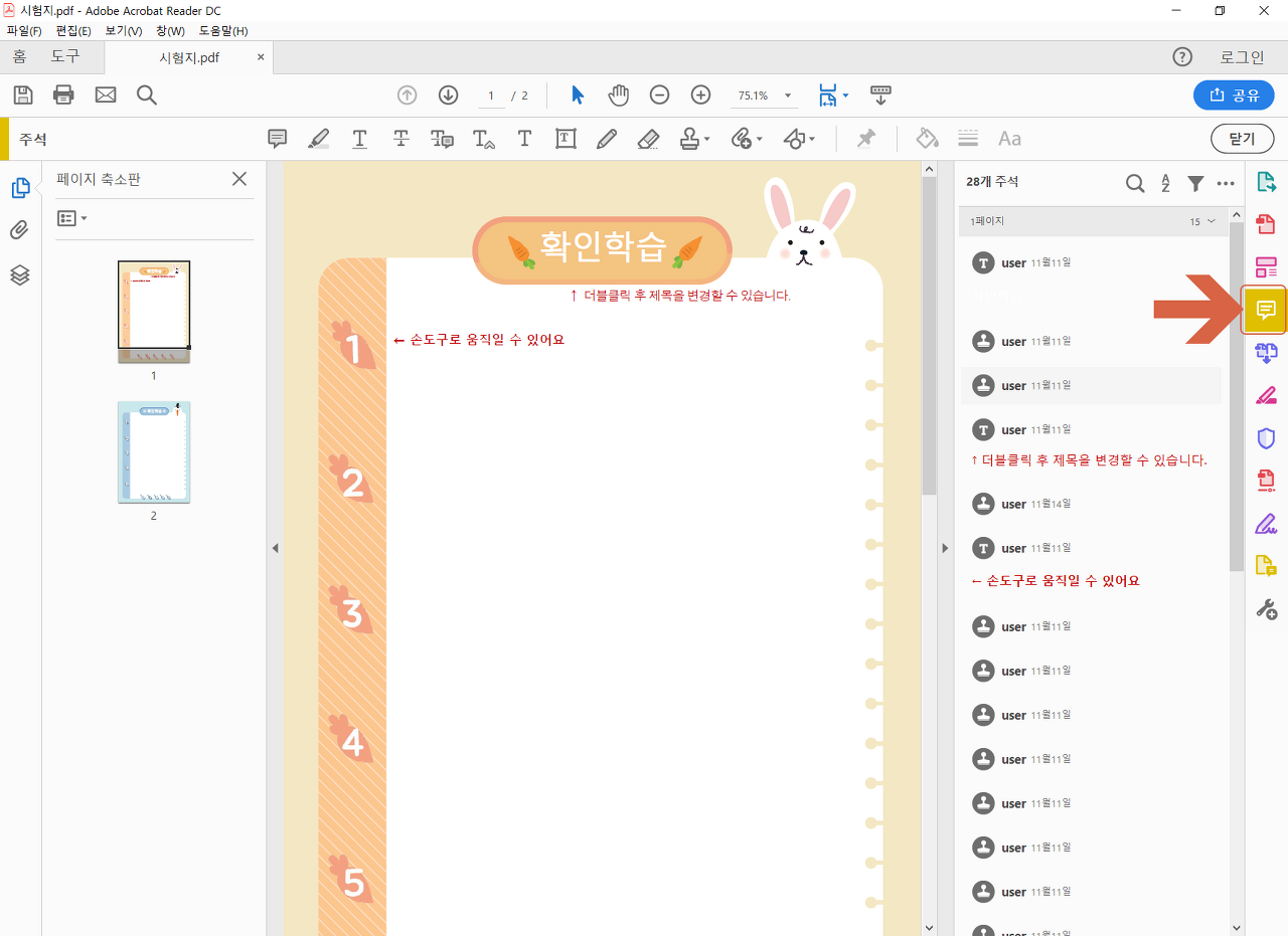 파일이 열렸습니다. 텍스트 주석 및 손도구를 이용하여 편집이 가능합니다.