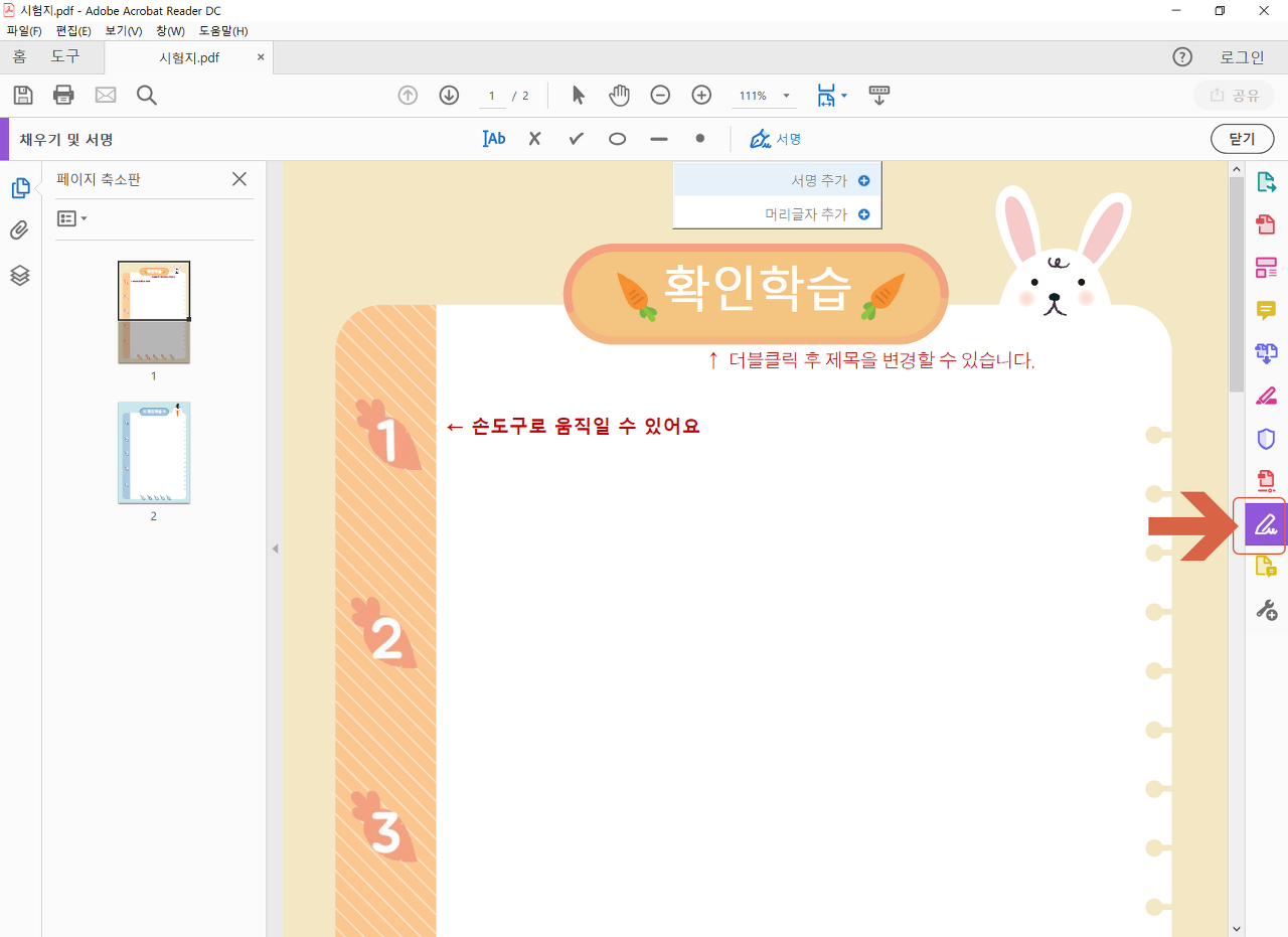 <채우기 및 서명> 기능도 사용이 가능합니다.