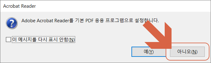 * Adobe Acrobat Reader DC를 기본 PDF 파일 프로그램으로 사용하려면 <예>를 눌러도 됩니다.