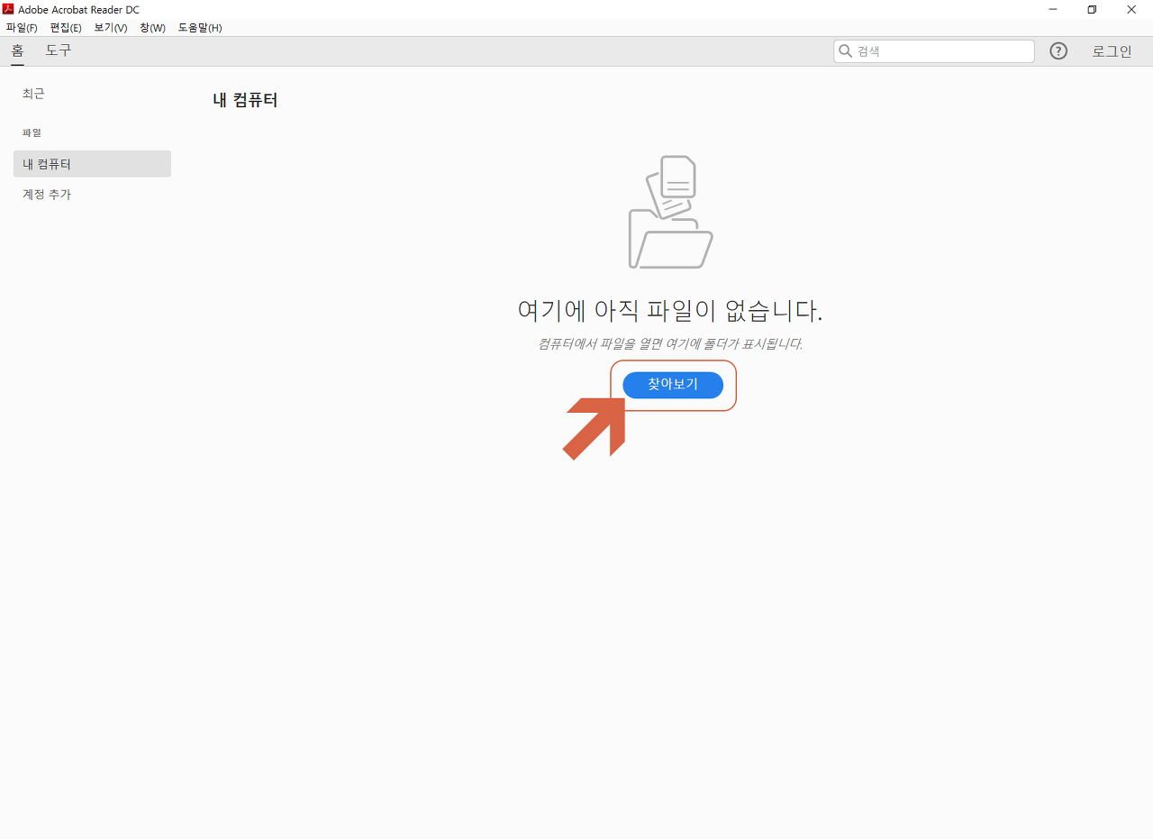 내 컴퓨터에서 PDF파일을 열어보도록 하겠습니다. <찾아보기>를 누릅니다.