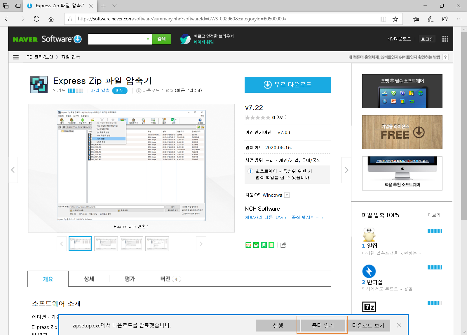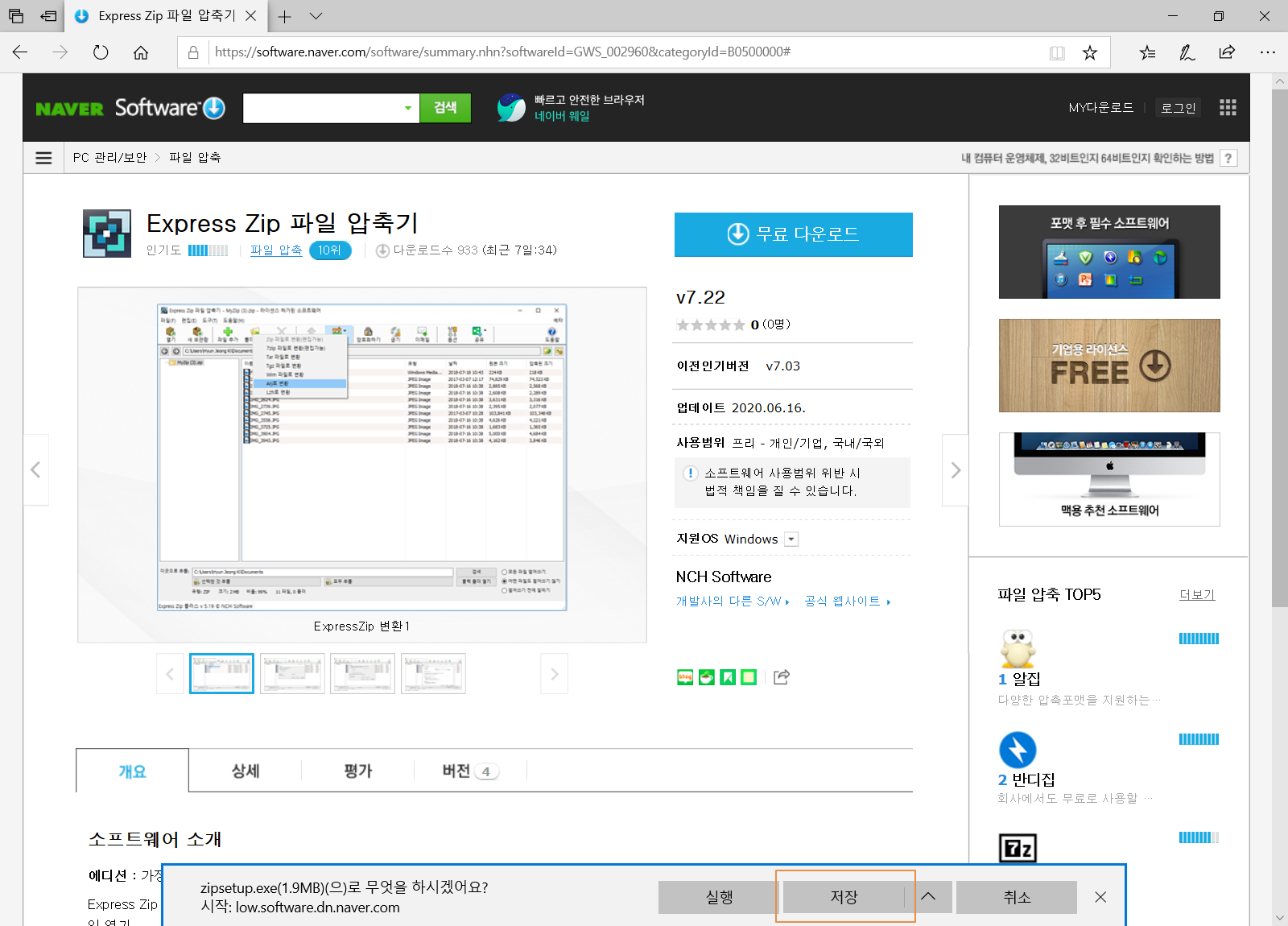 익스프레스 집(Express Zip) 파일 압축기 다운로드 사이트로 접속합니다.